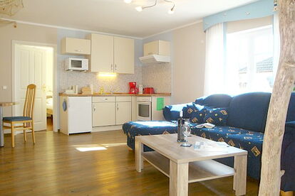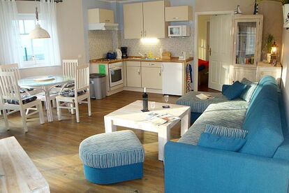 Das Ferienhaus verfügt über drei maritim, modern und komfortabel ausgestattete Nichtraucher-Ferienwohnungen, Wohnzimmer mit Küchenzeile und Essecke, separates Schlafzimmer und Bad. Die beiden Ferienwohnungen im Erdgeschoss haben jeweils eine eigene möblierte Terrasse. Die Wohnung im Obergeschoss verfügt über zwei separate Schlafzimmer, ein zusätzliches Gäste WC und einen Balkon. Die Pkw-Stellplätze befinden sich direkt auf dem Grundstück. Ein Hausmeisterservice ist vor Ort.